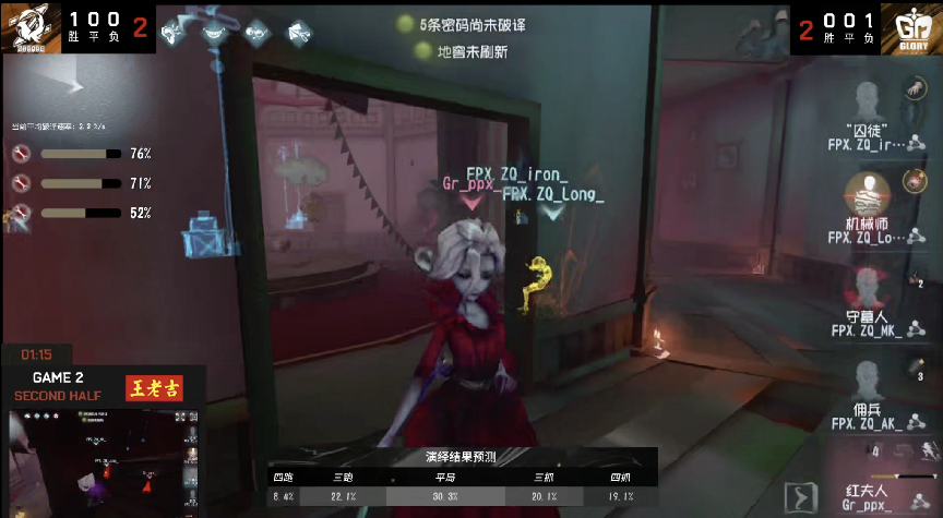 监管者FPX.ZQ战队——ban:先知 前锋 佣兵 pick:FPX.ZQ_afu破轮